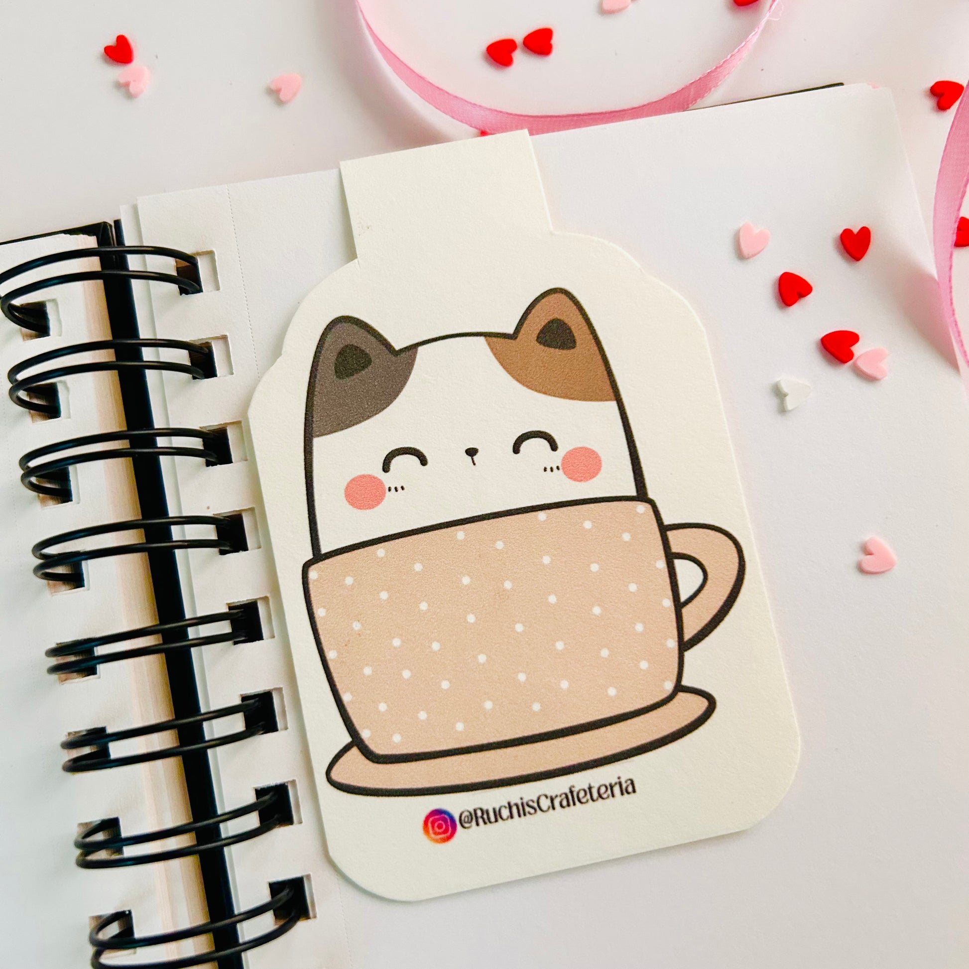 🐱☕️ Magnetic Bookmark – 'Mocha' in the Tan Mug