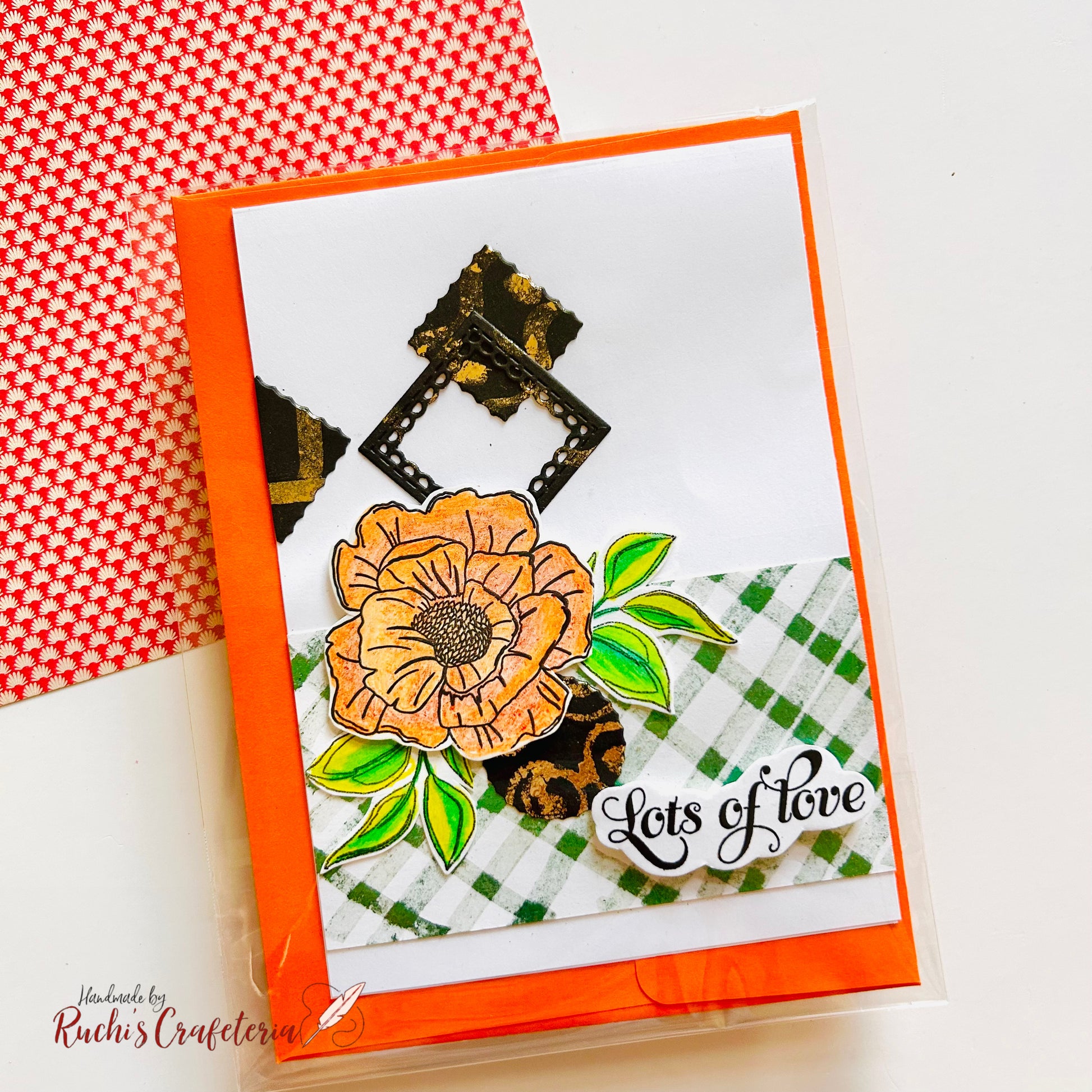 Celebrate birthdays with heartfelt artistry through this handcrafted card, featuring a bold fussy‑cut and hand‑colored orange floral design. Paired with the warm sentiment “Lots of Love” on a textured handmade background and set on a crisp white card base, this card blends elegance and joy into a keepsake to treasure.