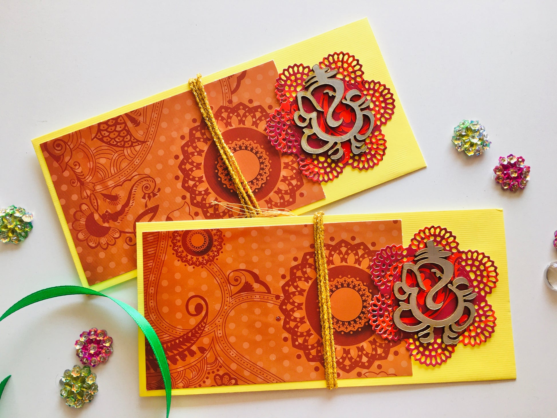 Festive Shagun Envelopes β Traditional Prints with Wooden Ganesha β¨π - Set of 2