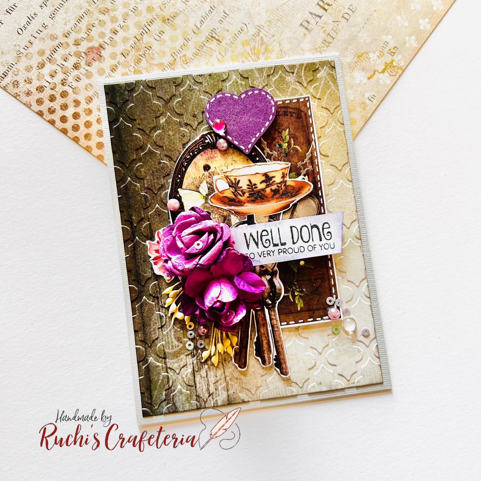 Celebrate achievements with this handcrafted layered card, designed on a textured surface for depth and artistry. Featuring decorative elements in a mixed media style, paired with the uplifting sentiment “Well Done, So Very Proud of You”, this card blends dimension, creativity, and heartfelt words, making it a keepsake to treasure.