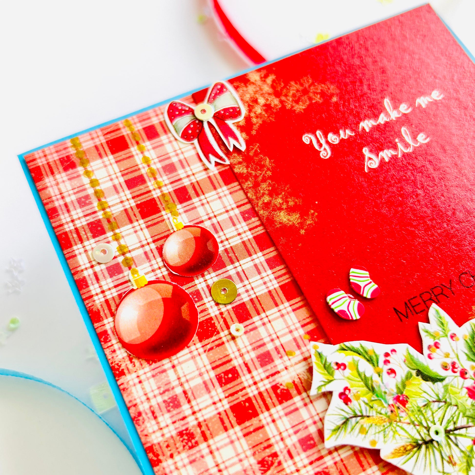 - Background: Blue cardstock for a wintry, festive contrast.